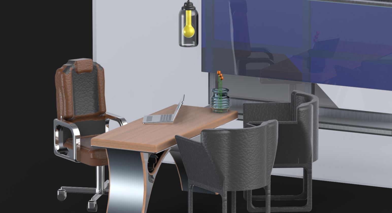 En esta imagen se muestra una vista general del despacho de dirección, un espacio concebido para reflejar liderazgo, elegancia y funcionalidad. Cada elemento, desde la disposición del mobiliario hasta los acabados, ha sido pensado para crear un entorno que inspire decisiones claras y momentos de concentración.